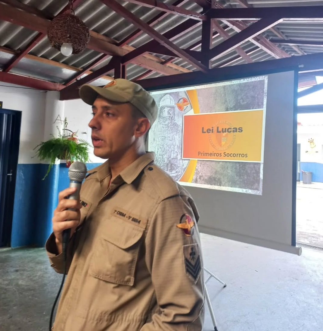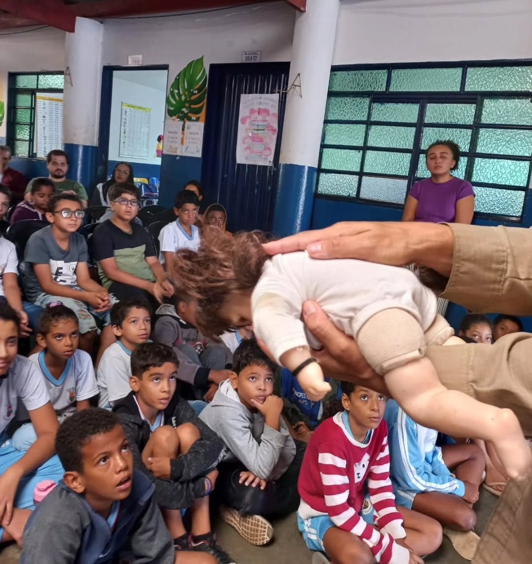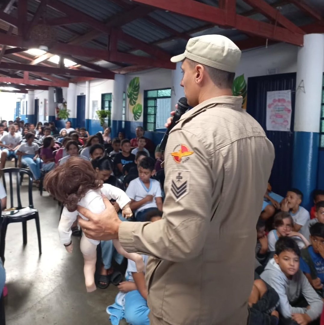 Corpo de Bombeiros conduz palestras sobre engasgamento, afogamento e emergências escolares; programa iniciado na Escola Municipal Orozina Maria deve ser estendido a toda a rede de ensino