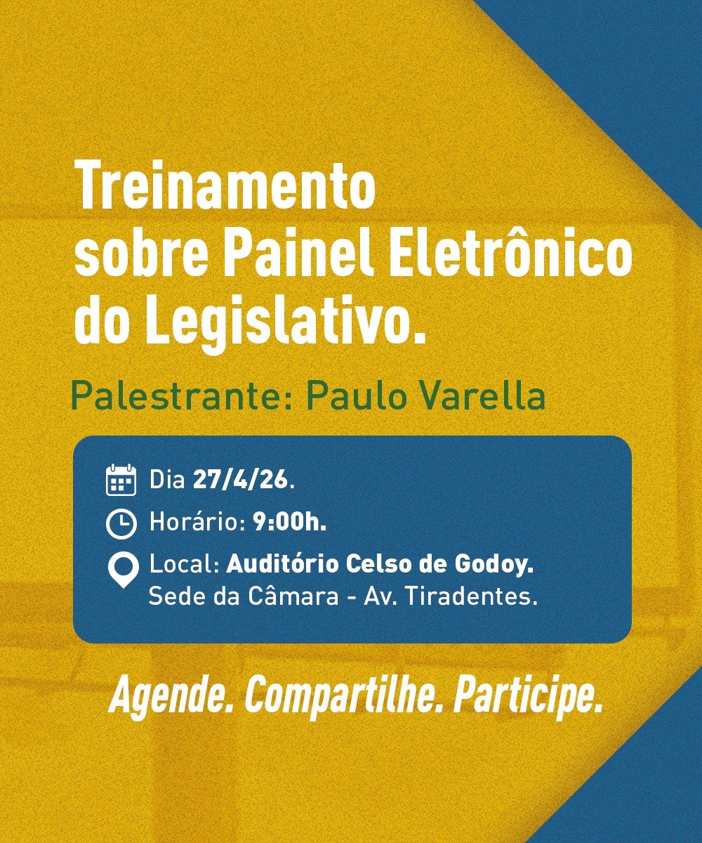 O curso de aperfeiçoamento será conduzido por Paulo Varella, especialista em painel eletrônico legislativo. Segundo a organização do evento, o treinamento terá caráter prático, com foco no uso eficiente das ferramentas já disponíveis na Câmara e nas melhores formas de explorá-las no dia a dia institucional.