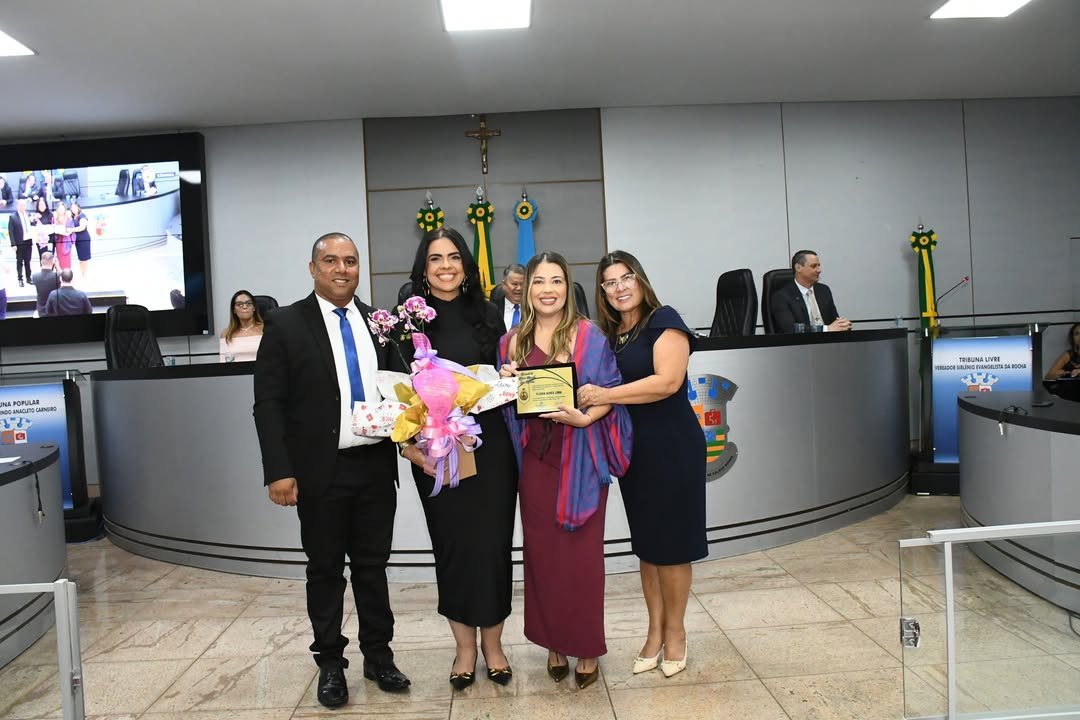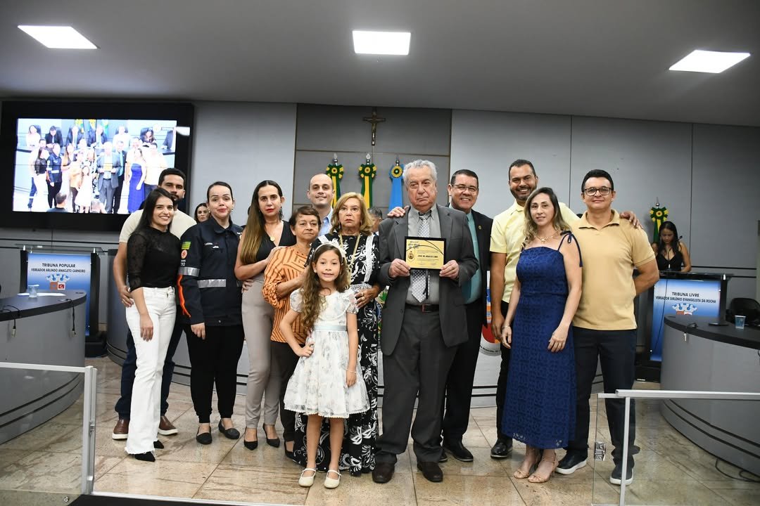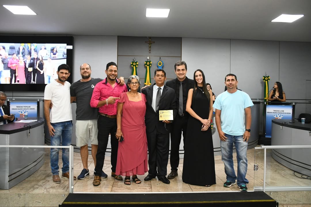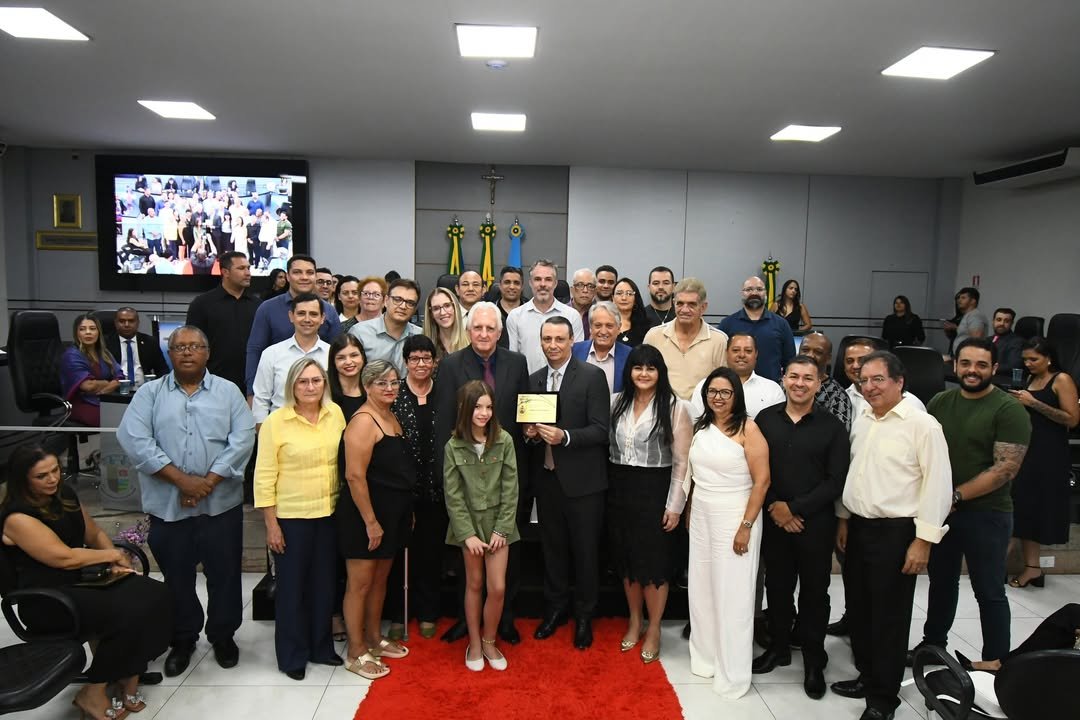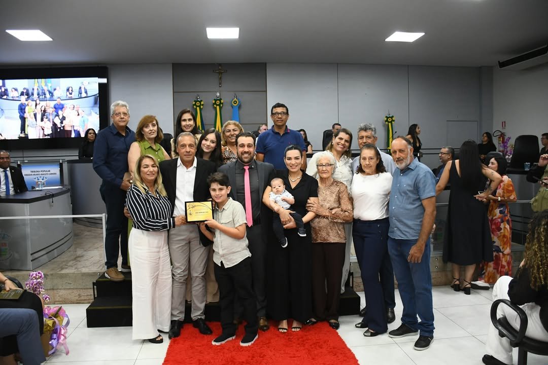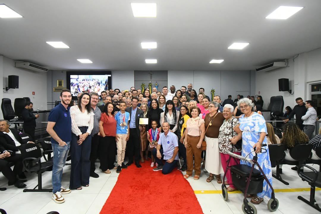 Durante a solenidade, cada vereador entregou a comenda ao seu indicado, em um momento de homenagem e valorização das trajetórias individuais que contribuem para o engrandecimento do município.