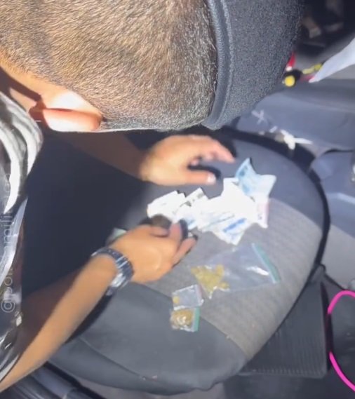 Durante o acompanhamento, os policiais presenciaram o momento em que a passageira do veículo arremessou pela janela diversas porções de crack. O material foi posteriormente localizado e apreendido pelas equipes policiais.