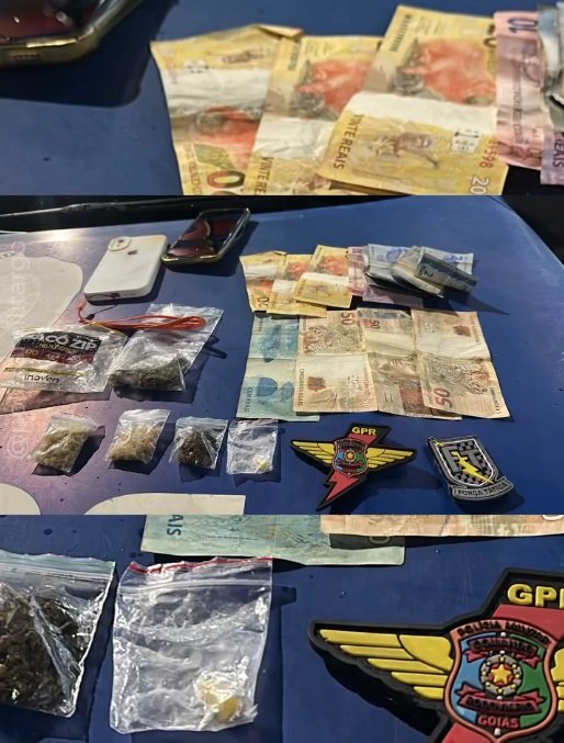 Após a contenção do veículo, os agentes realizaram uma busca minuciosa e encontraram mais entorpecentes no interior do automóvel, incluindo porções de maconha e crack. Também foi apreendida uma quantia em dinheiro, identificada pelos policiais como proveniente da atividade de tráfico de drogas.