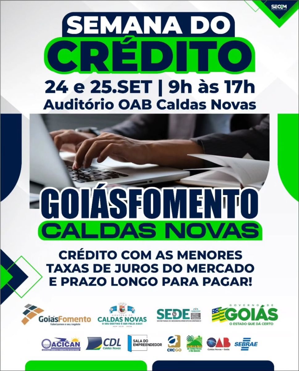 A cidade de Caldas Novas se prepara para receber um dos principais eventos voltados ao desenvolvimento econômico da região. Nos dias 24 e 25 de setembro, a Goiás Fomento, em parceria com o Governo Municipal através da Secretaria de Desenvolvimento Econômico e entidades de classe, promove a Semana do Crédito, uma iniciativa que promete movimentar o cenário empresarial local.