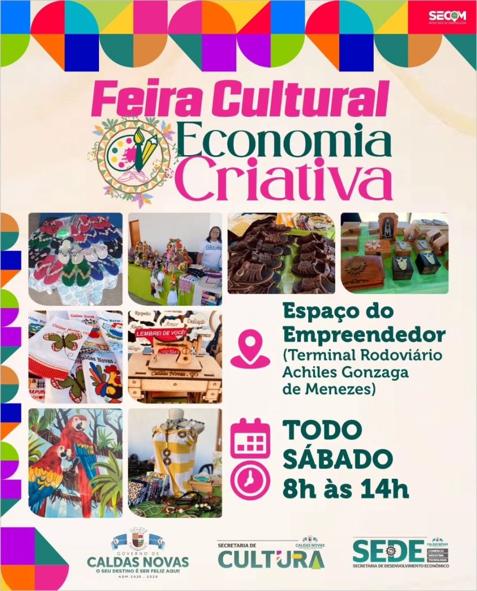 Artesãos de Caldas Novas ganharam um espaço fixo para expor e comercializar seus produtos na cidade. O Governo Municipal, por meio das Secretarias de Desenvolvimento Econômico (SEDE) e de Cultura, promove todos os sábados a Feira Cultural Economia Criativa, que se tornou uma vitrine para a produção artesanal local.