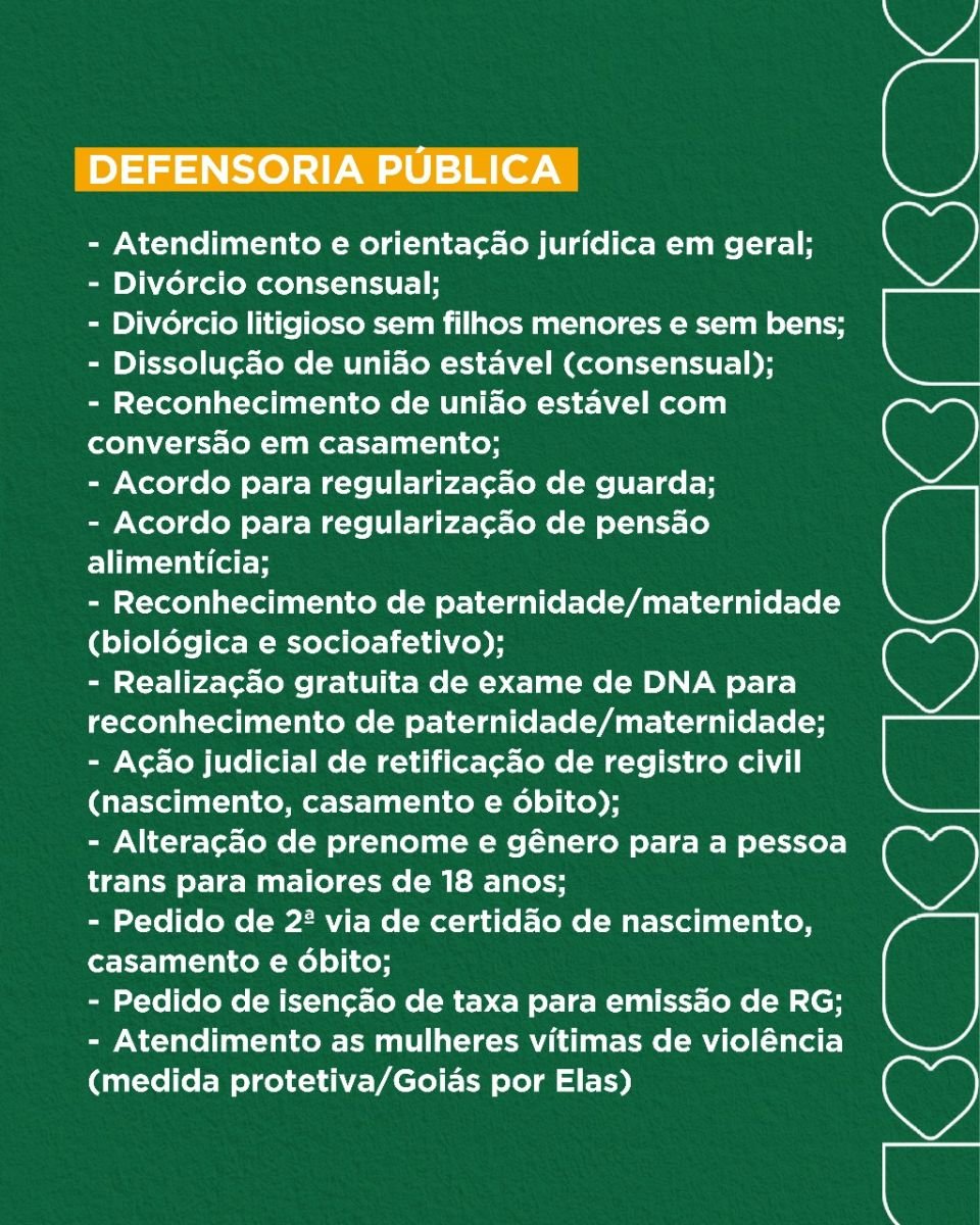 A segurança pública também marca presença no evento. A Defensoria Pública Estadual, Polícia Civil, Polícia Militar e Corpo de Bombeiros Militar disponibilizarão serviços essenciais à população, como regularização de acordos de guarda e pensão alimentícia, emissão de carteira de identidade, orientações sobre a Lei Maria da Penha e instruções de primeiros socorros.