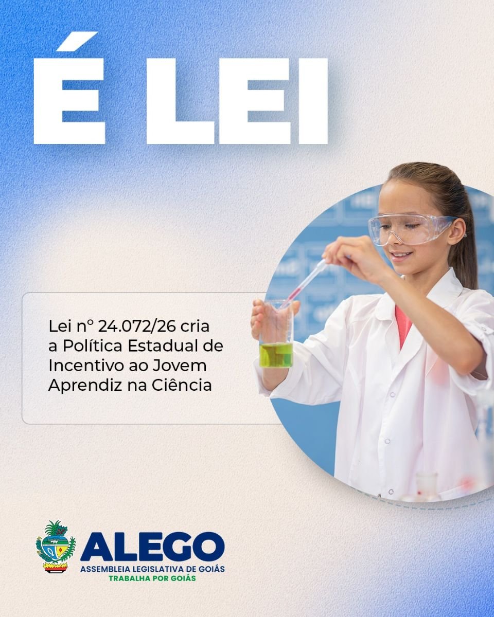 O governador de Goiás em exercício, Daniel Vilela, sancionou no último dia 4 de fevereiro a Lei nº 24.072/2026, que institui a Política Estadual de Incentivo ao Jovem Aprendiz na Ciência. A medida, publicada no Diário Oficial do Estado, representa um passo significativo na aproximação dos adolescentes goianos com o universo científico e na democratização do acesso às carreiras de pesquisa e tecnologia.