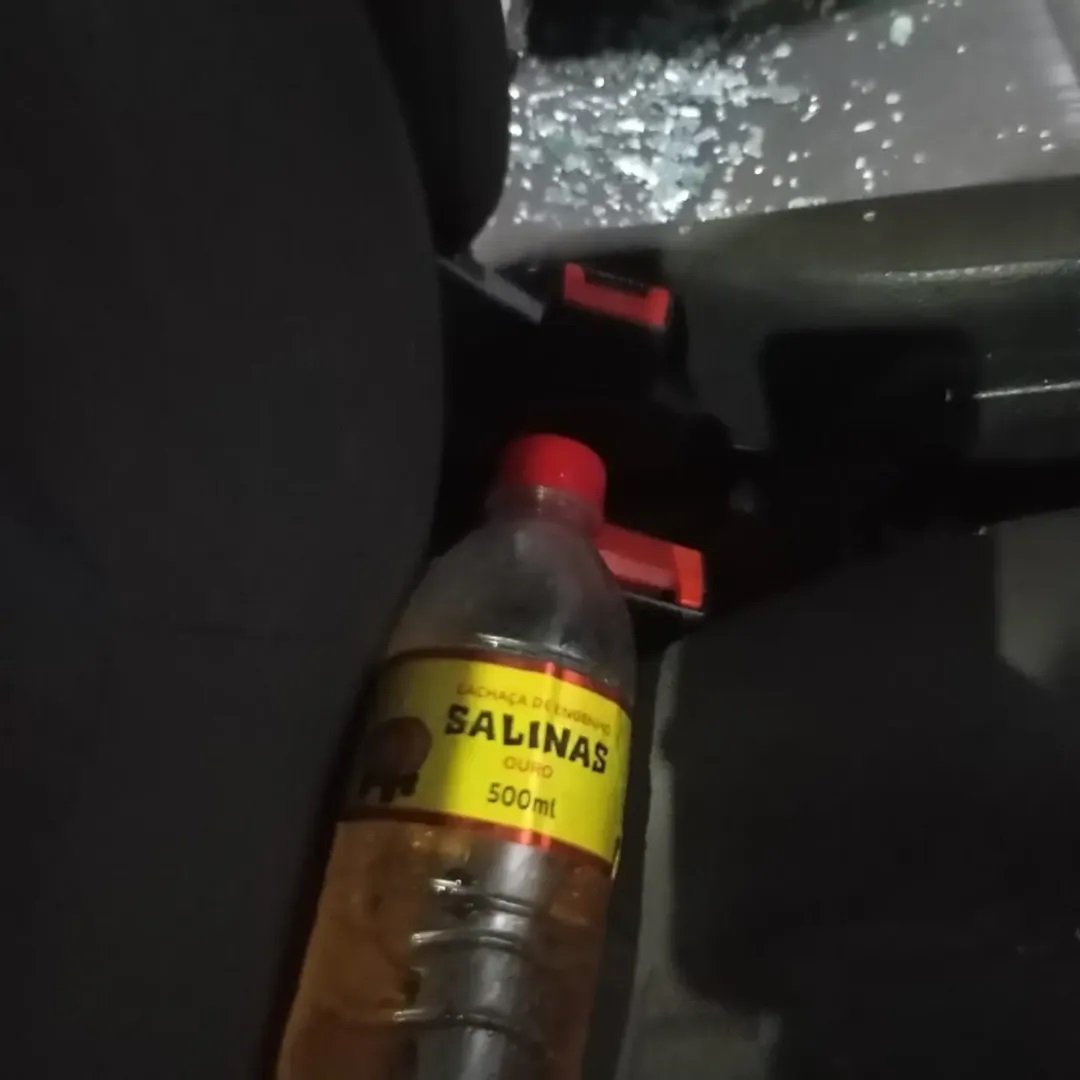 Após o impacto, os policiais desembarcaram e se depararam com um condutor com sinais visíveis de embriaguez. O homem se recusou, inicialmente, a sair do veículo, o que obrigou os agentes a romperem o vidro do carro para realizar a abordagem com segurança. No interior do automóvel, foi encontrado um frasco de bebida alcoólica.