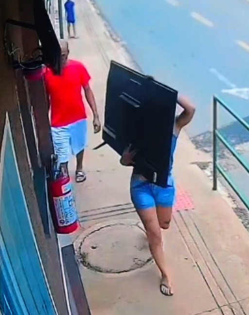 Os policiais militares foram acionados após a vítima registrar o furto na Polícia Civil e informar que possuía imagens de segurança mostrando os autores transportando o televisor subtraído de sua casa. As gravações foram fundamentais para identificar os suspeitos.