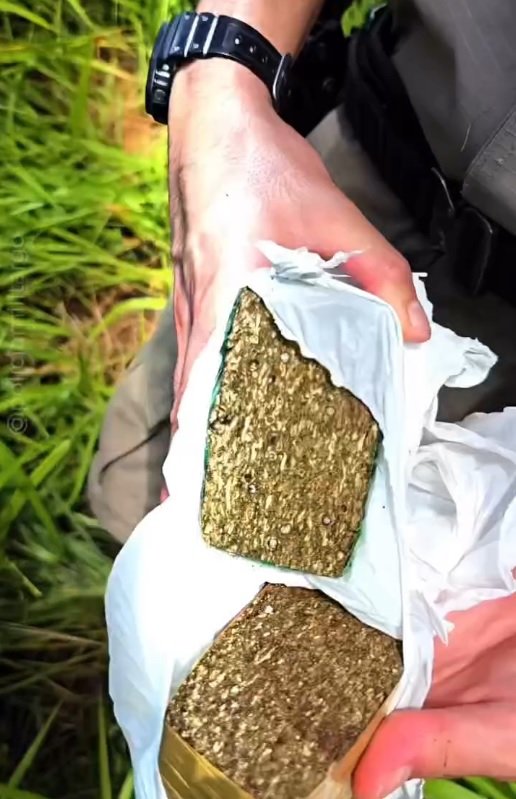 Após a contenção do suspeito, os agentes realizaram varredura no local e localizaram a sacola dispensada. No interior da embalagem, foram encontrados aproximadamente um quilo de maconha.
