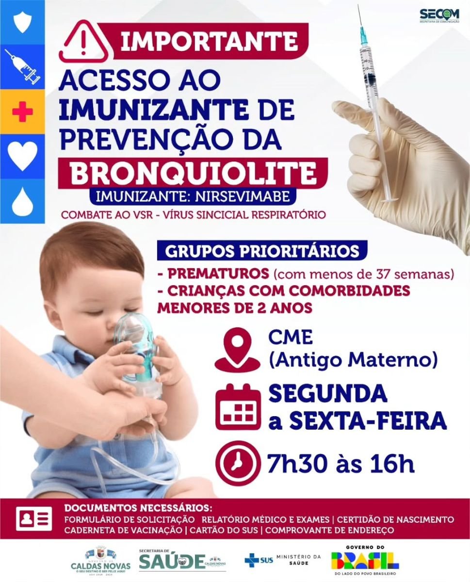 A Prefeitura de Caldas Novas deu mais um passo importante na proteção da saúde infantil. Está disponível, na rede municipal de saúde, a vacina de prevenção ao Vírus Sincicial Respiratório (VSR) — doença respiratória que pode evoluir para quadros graves em recém-nascidos e bebês.