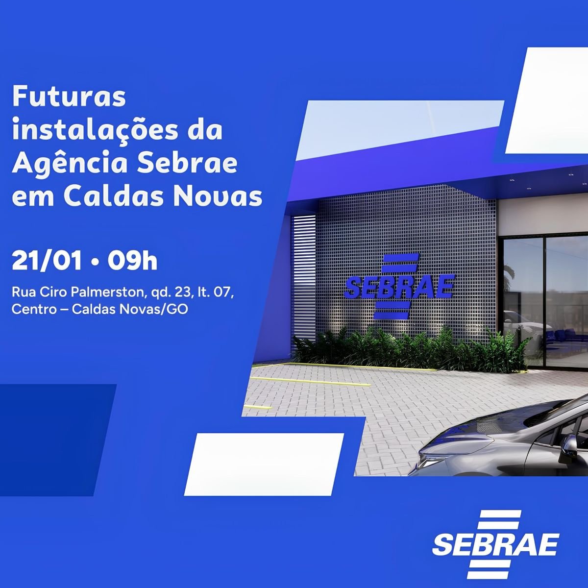 Na próxima quarta-feira (21/01), a partir das 9h, será lançada oficialmente a pedra fundamental da nova sede da Agência Sebrae em Caldas Novas. O evento da Regional Sul vai acontecer na Rua Dr. Ciro Palmerston, em frente à Igreja Metodista. A nova unidade permitirá ampliar ações voltadas ao apoio aos pequenos negócios, oferecendo ambientes mais modernos, funcionais e preparados para capacitações, atendimentos especializados, eventos e projetos estratégicos para a região, que tem forte vocação turística e empreendedora.