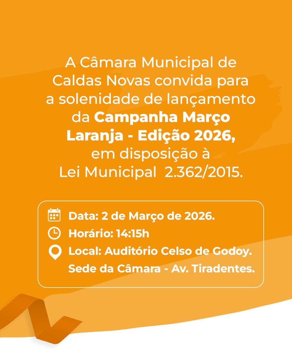 É nesse espírito que a Câmara Municipal convoca não apenas estudantes e educadores, mas toda a população de Caldas Novas a participar da solenidade e a vestir, ao longo do mês, a causa que a cor laranja representa.