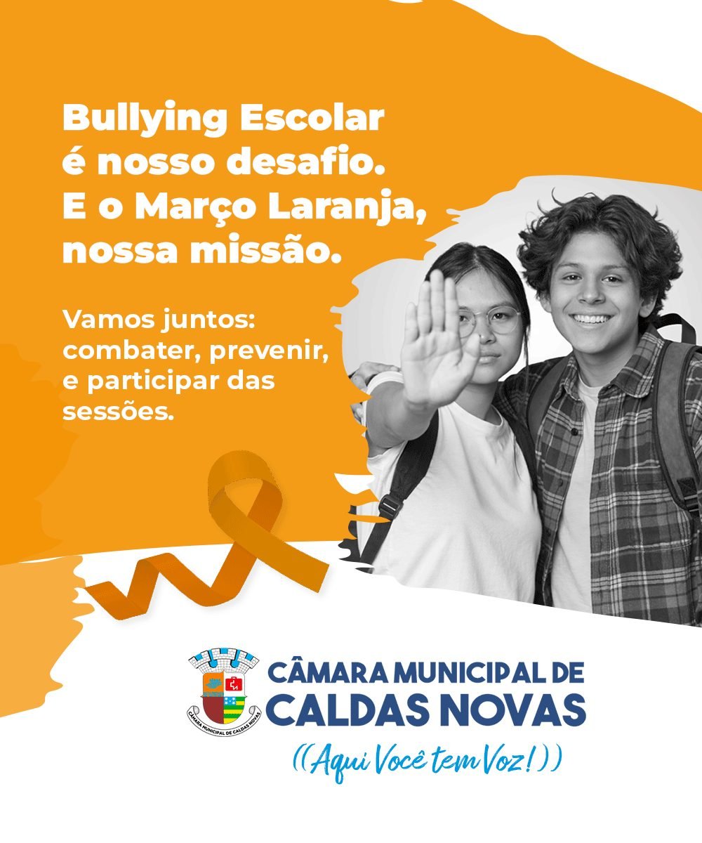 Há quem pense que o bullying é coisa de criança. Que faz parte do crescimento. Que sempre foi assim e sempre será. A Câmara Municipal de Caldas Novas discorda — e desde 2015 transforma esse posicionamento em lei. Neste ano, o legislativo municipal volta a dar o sinal laranja: a solenidade de lançamento da Campanha Março Laranja – Edição 2026 está marcada para o dia 2 de março, a partir das 14h15, no Auditório Celso de Godoy, sede da Casa, na Avenida Tiradentes.