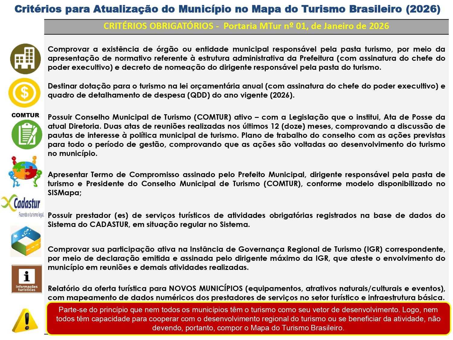 Critérios para atualização do Município no Mapa do Turismo Brasileiro (2026)