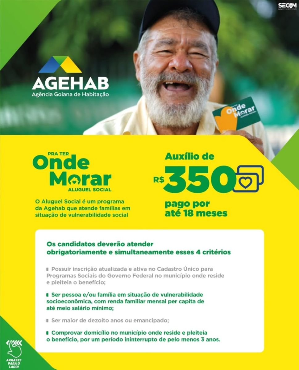 Famílias em situação de vulnerabilidade social de Caldas Novas têm até o dia 17 de novembro para se inscrever no programa Aluguel Social, iniciativa do Governo de Goiás que oferece auxílio financeiro para pagamento de aluguel. O benefício, no valor de R$ 350 mensais, pode ser concedido por até 18 meses.