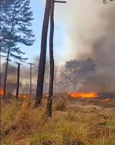Um incêndio florestal de grandes proporções atingiu, no sábado (27/09), áreas rurais do município de Rio Quente, em Goiás. O fogo começou por volta das 11h30 e só foi controlado por volta das 23h, após mais de 11 horas de combate intenso.