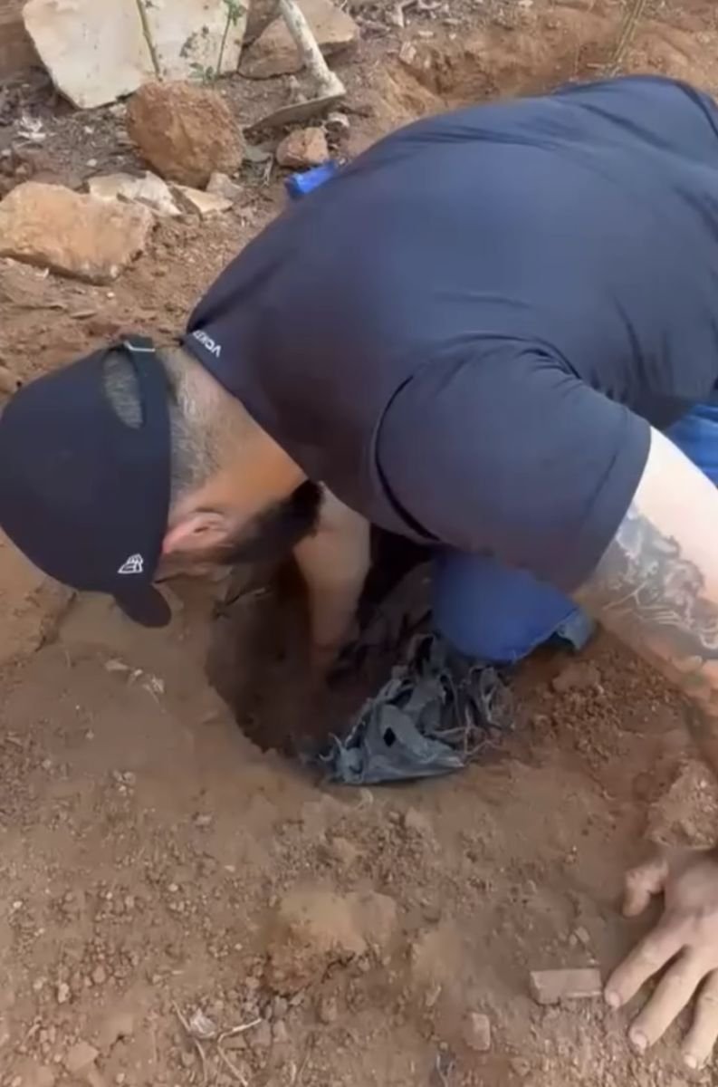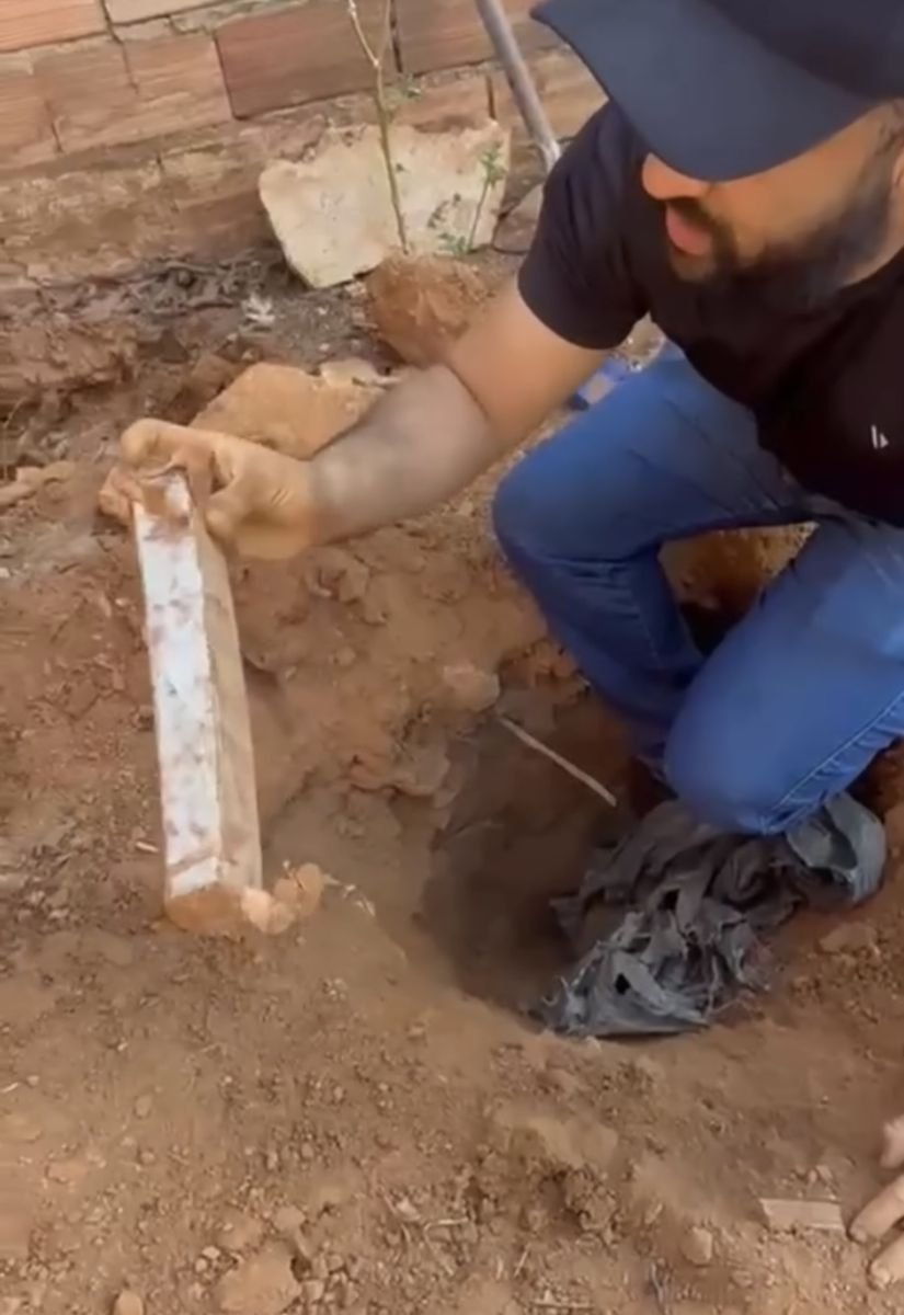 Após uma busca minuciosa no terreno, os policiais localizaram e desenterraram 13 tabletes da droga, que haviam sido escondidos no quintal da residência.
