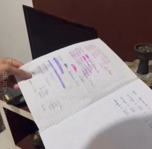 - Caderno com anotações do tráfico apreendido.