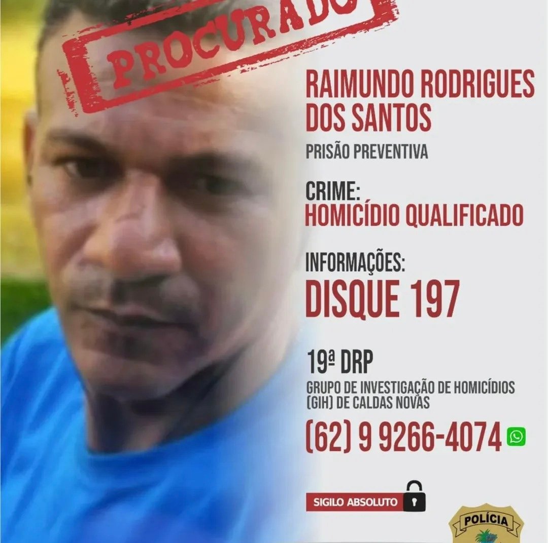 Informações sobre a localização do investigado podem ser encaminhadas via WhatsApp ao GIH/GENARC de Caldas Novas – (62) 99266-4047. O sigilo é absoluto.