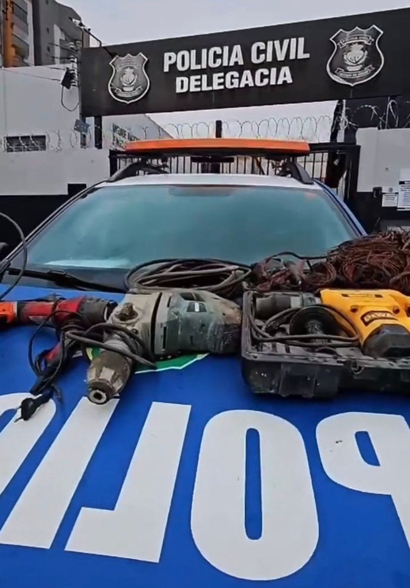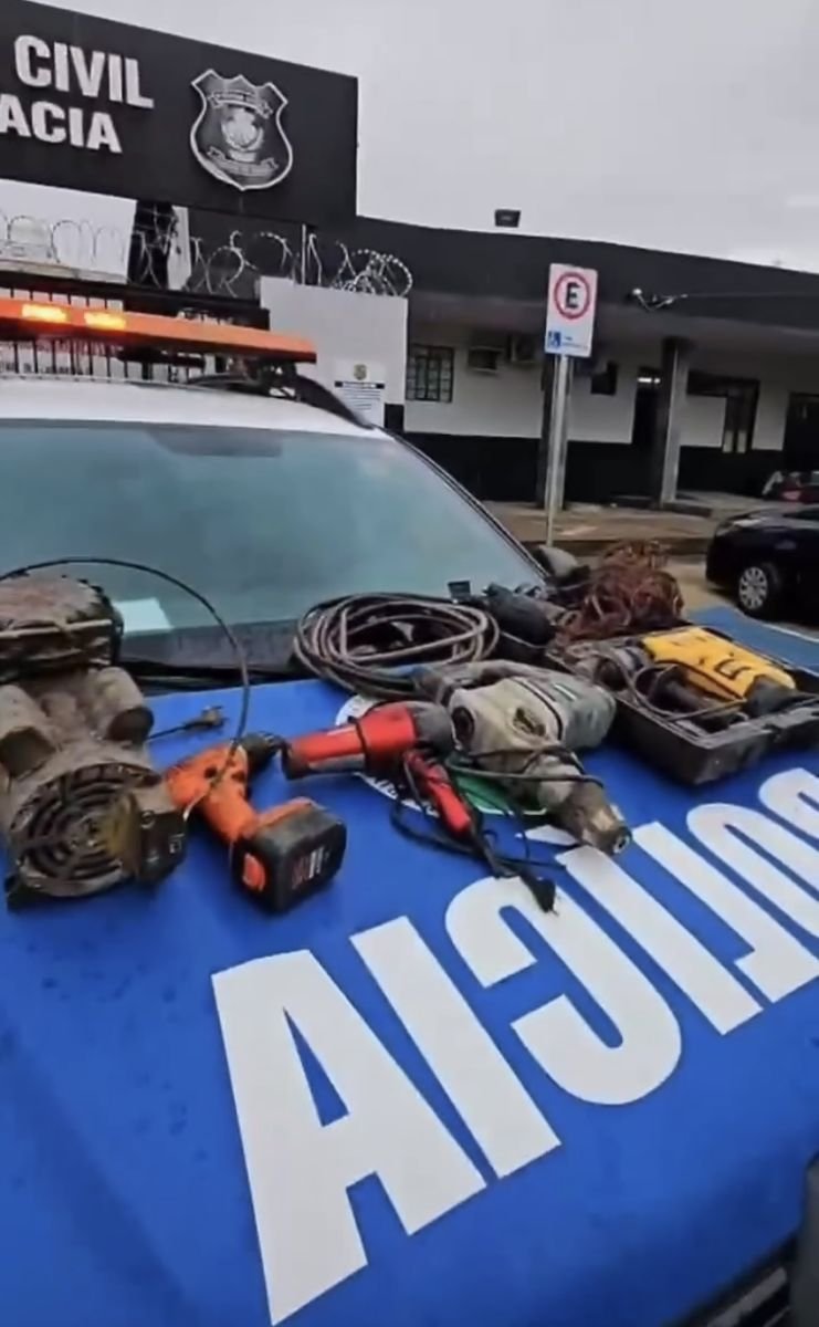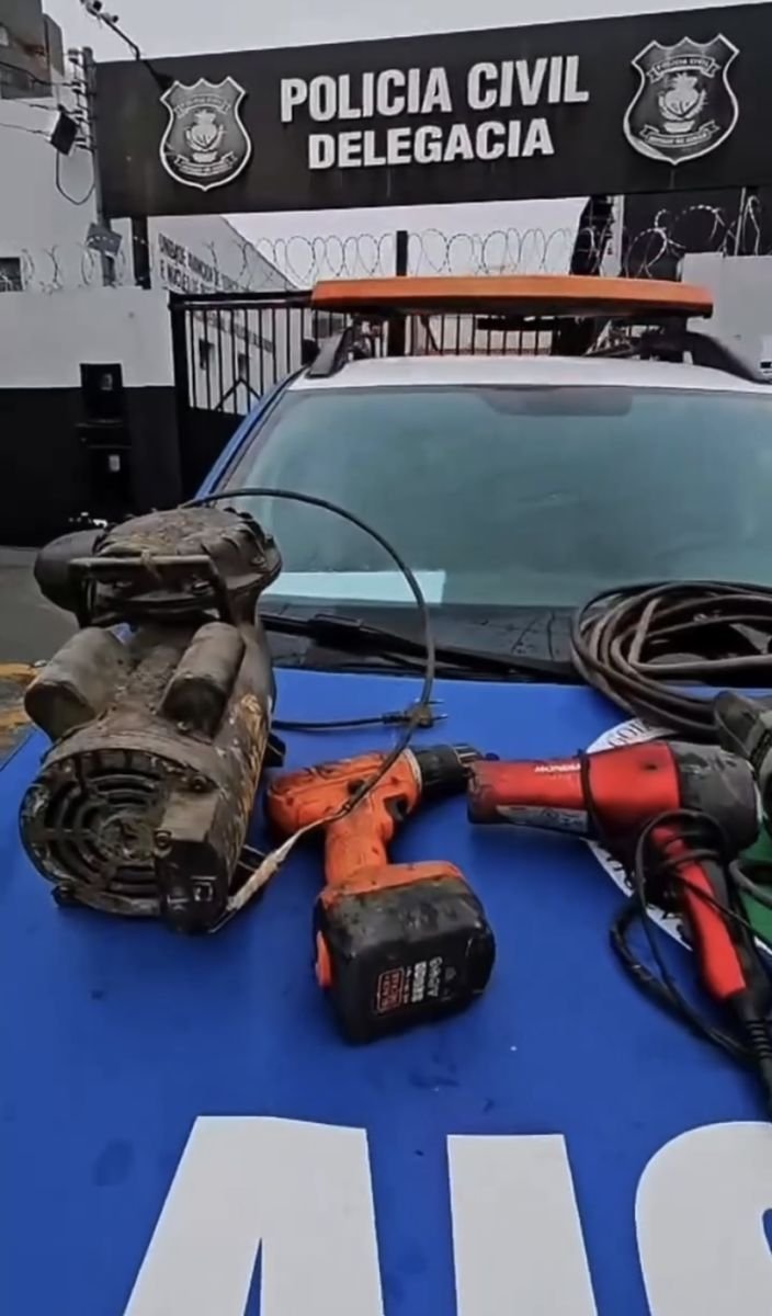 Ao chegarem ao local indicado, os policiais encontraram o suspeito empurrando um carrinho de mão contendo diversas ferramentas que haviam sido subtraídas do estabelecimento. Entre os itens recuperados estavam marteletes, furadeira, compressor e alicates.