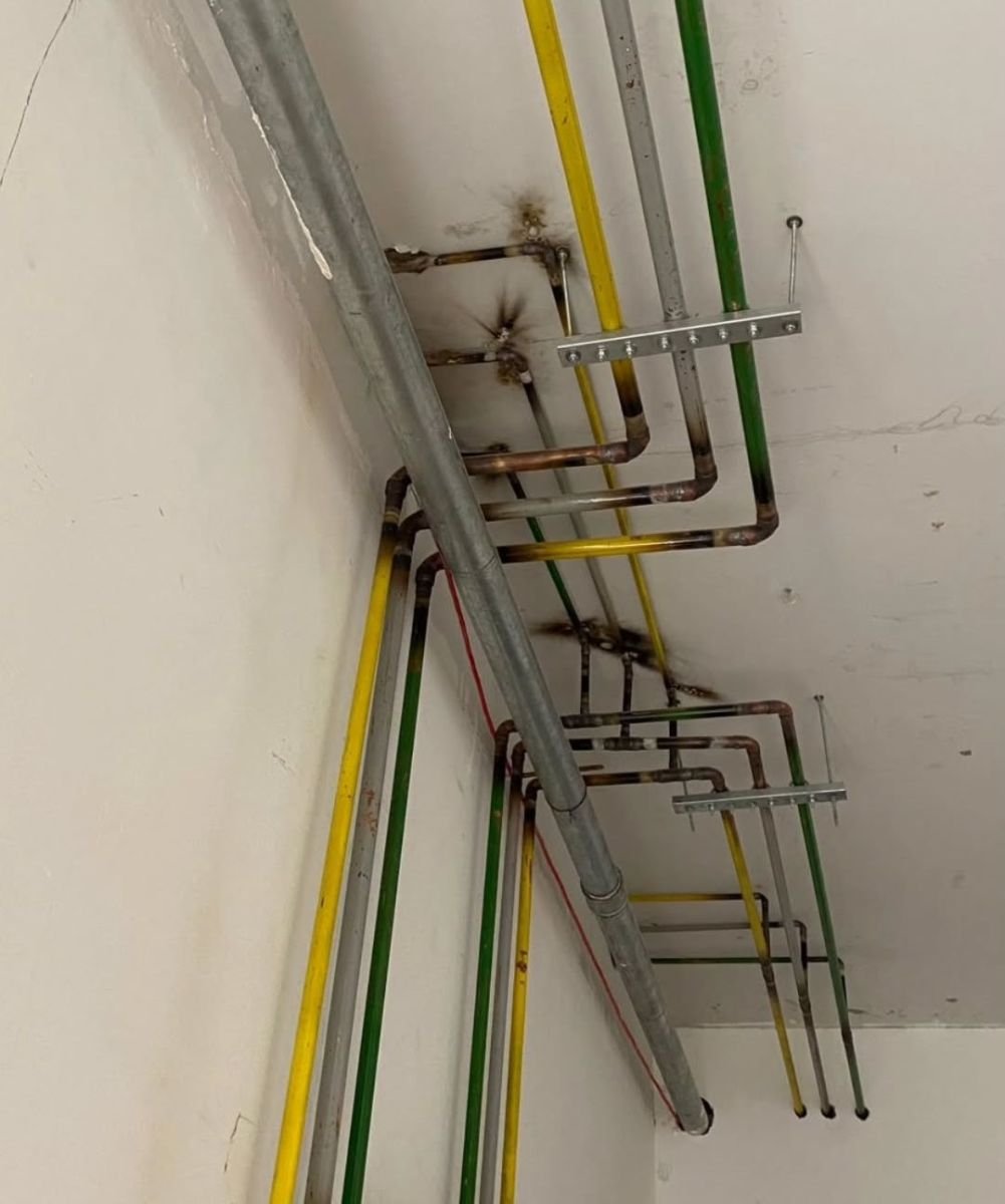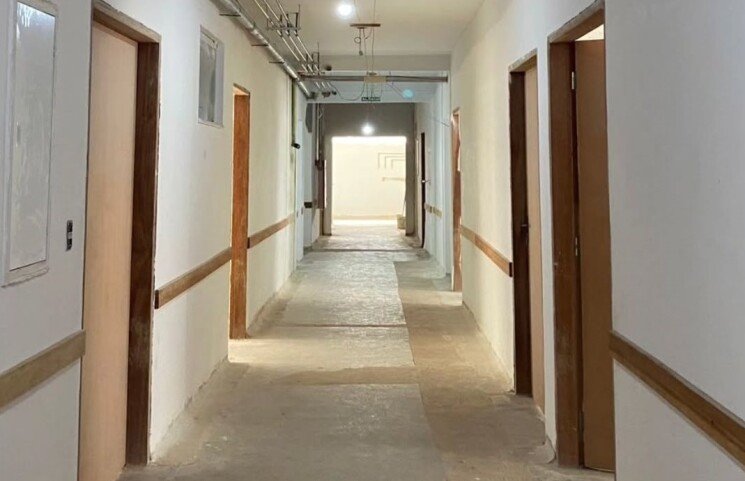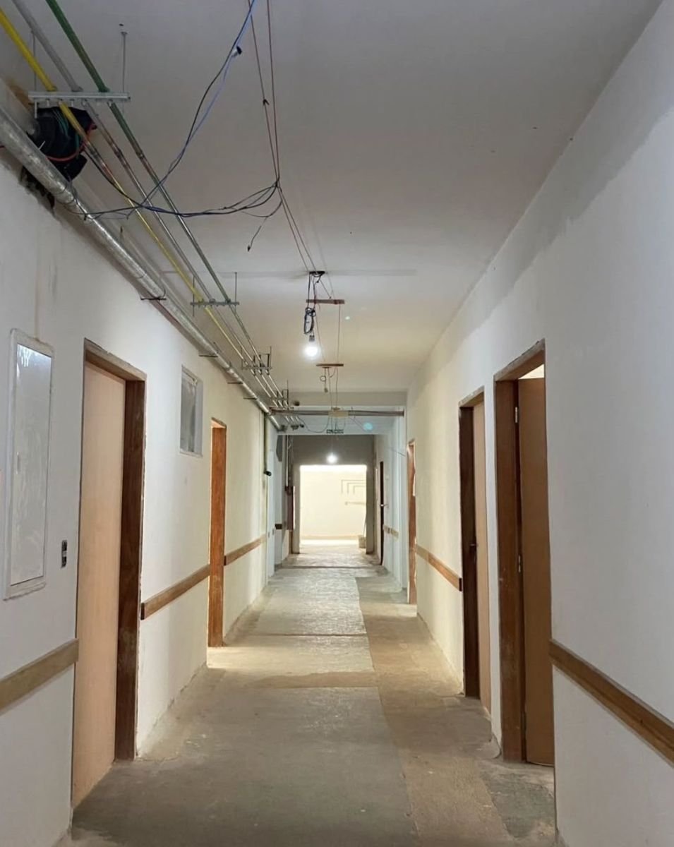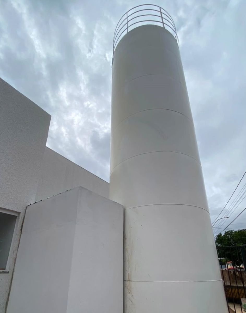 Na parte externa, a construção do telhado da sala de máquinas e da sala do QGBT (Quadro Geral de Baixa Tensão) está em andamento, assim como a pintura das grades externas do portão da central de oxigênio, estrutura essencial para o funcionamento hospitalar.