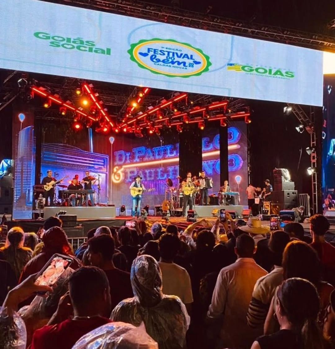 Caldas Novas viveu na segunda noite do Festival do Bem momentos de pura emoção e nostalgia ao som da dupla Di Paullo & Paulino. O evento, realizado no Espaço Municipal de Eventos, reuniu grande público que acompanhou os maiores sucessos da longa trajetória dos artistas sertanejos, mesmo sob chuva.